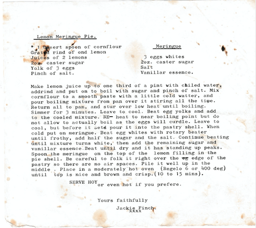 This recipe was typed out by Miss Finch on her dad’s type writer c. 1975 and has been made so many times in the Bird house over the last 45 years. Yum. Thank you Aunty Jackie.